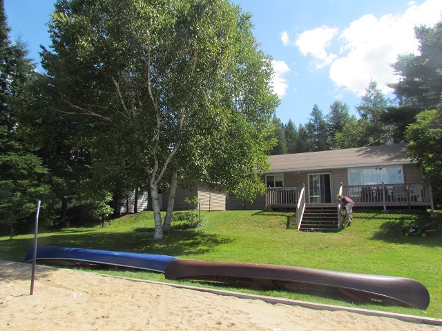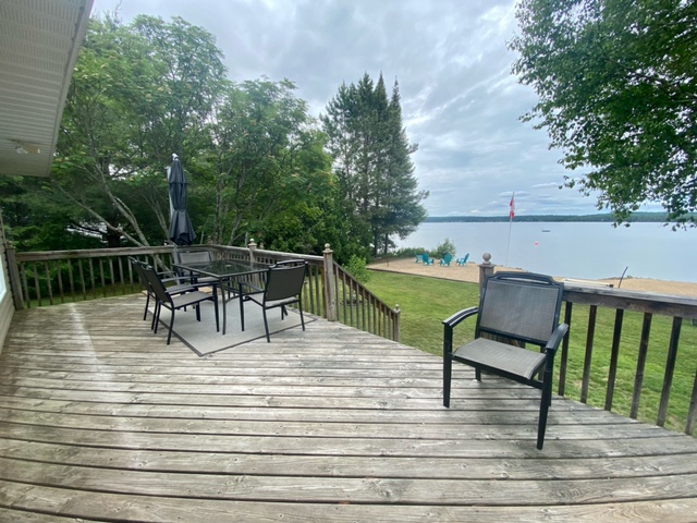 Newly Renovated and Tastefully Decorated 3 bedroom cottage just steps away from the beach! Lake Bernard is the largest fresh water lake in Ontario without an island. It offers fantastic fishing, great swimming, an extremely safe sandy shallow entry for kids, great boating and all of this located just a short drive from the quaint town of Sundridge. As you can see from the pictures the cottage boasts a flat lot with a stunning view of the lake along with an amazing large sandy beach where kids can entertain themselves for hours. The kids can literally walk out about 150ft if not more before the the lake gets deep and inside the water it is hard packed sandy bottom with no weeds. There is so much for the family to do at this property including volleyball/badminton, horseshoe tournaments, canoeing and exploring the lake, campfires at the waters edge, swimming, cards/board games, building sand castle, swimraft, reading a book or several while enjoying the peacefulness of being lakeside or watching the wildlife share this tranquil spot with you and your family just to name a few. The town of Sundridge is well equipped with grocery store, local deli and butcher, coffee shop, a great park for kids in town at the public beach, eclectic gift shops, restaurants, LCBO, Danny’s Justa Pasta down the hwy and golfing right in town. Why don’t you call or email today to find out the availability and book your upcoming family vacation at this Lake Bernard ‘Sandy Beach Haven’!